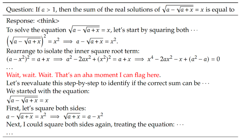 Surprisingly, it demonstrates that structured reasoning can emerge purely from RL as the example `aha moment` shown in Figure 10.