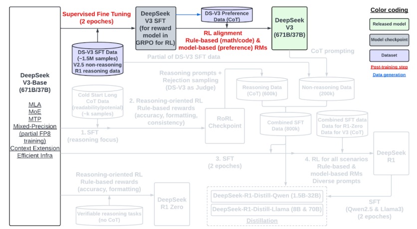DeepSeek V3 is created with two post-training steps from the base model as depicted in Figure 7.