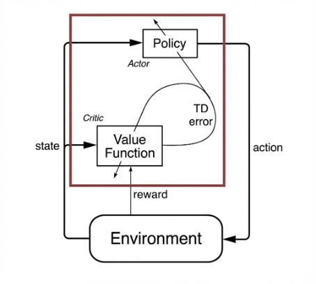 Actor-Critic algorithms combine two complementary components that work together to learn optimal behavior, as illustrated in Figure 1: